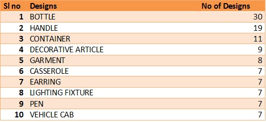Design Trends – May 2014 ipmetrix / June 11, 2014 The top ten designs for the Month of May are Bottle, Handle & Decorative Article etc and the table below shows the top ten designs that received the maximum number of protection in the month of May, 2014. by Akshatha karthik Share this: Click to share on X (Opens in new window) X Click to share on Facebook (Opens in new window) Facebook Click to share on LinkedIn (Opens in new window) LinkedIn Click to email a link to a friend (Opens in new window) Email Like Loading...