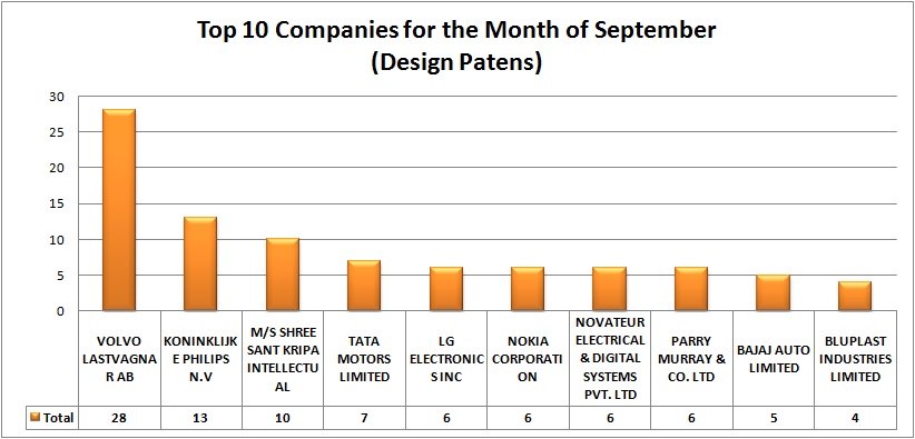 The Indian Patent office granted 236 Design patents in the month of September, 2014. The details are depicted below: